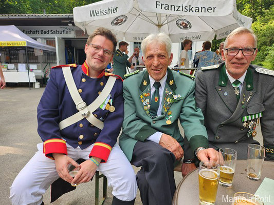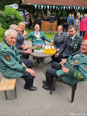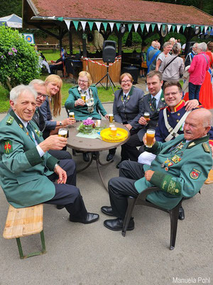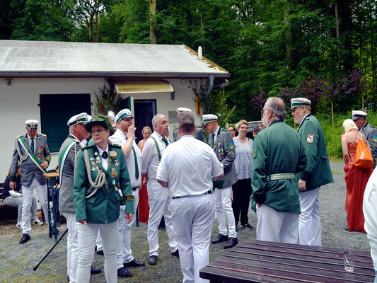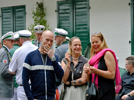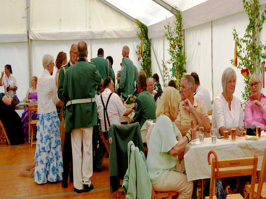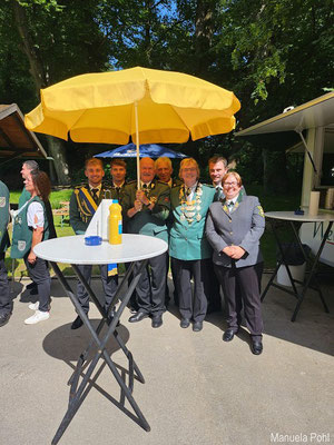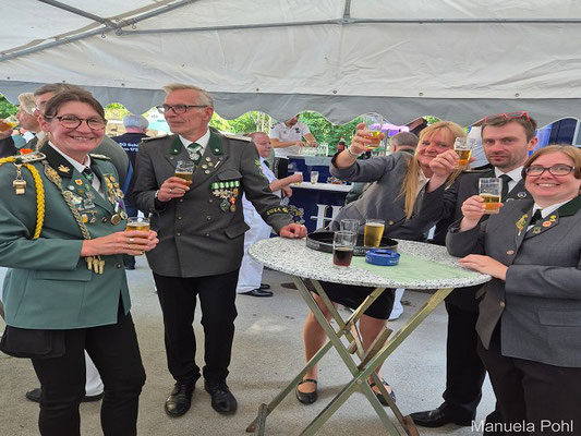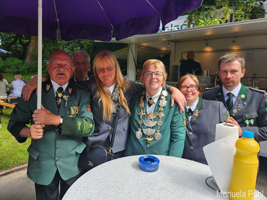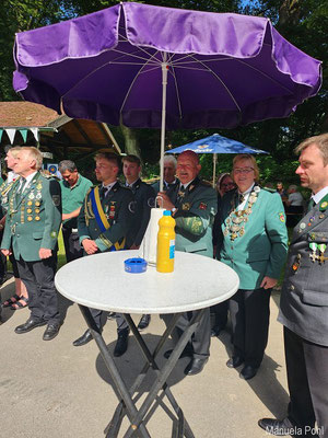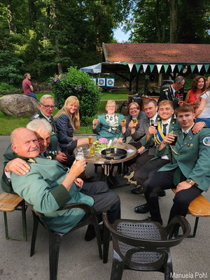 Die Sonne strahlt und es war eine schöne Atmosphäre beim Kreiskönigschießen. Jeder genoss es draußen zu sitzen und zu klönen. Man hatte sich viel zu erzählen. Natürlich wurde auch geschossen.