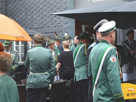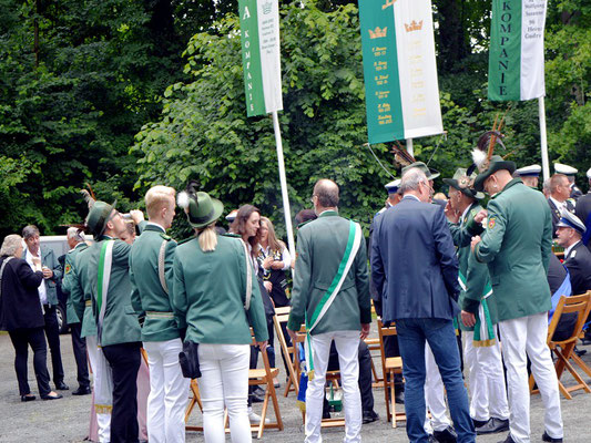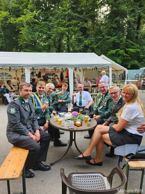Wieder ein Traumwetter! Unser Gewehrreinigen, immer kurz vor unserem Königschießen, durften wir wieder in dem wunderschönen Garten der Strate Brauerei durchführen. Die Familie Strate hat uns herzlichst empfangen. Die Könige der Abordnungen der geladenen Vereine , gaben ihr Bestes, damit die Atrappen wieder glänzten. Die Vereine aus Enger, Horn, Meiersfeld, Wehren, Augustdorf, Belle und natürlich die Detmolder, waren da.