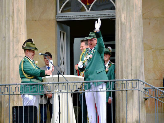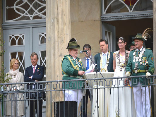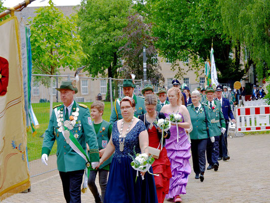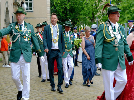 Der Sonntag stand im Zeichen der Inthronisierung des Jungschützenkönigs Thies Hensdiek und der Inthronisierung des neuen Schützenkönigs Jürgen Ahlgrimm und der Übergabe der Damenbestenkette an Ute Schmidt. Der Bürgermeister Frank Hilker übernahm die Kettenübergabe. Er, der Vorsitzende Thomas Roß, der stv. Landrat Stephan Grigat und S.D. Stephan Prinz zur Lippe hielten Ihre Reeden, wobei auch die lange Geschichte der Detmolder Schützen erzählt wurde und wie wichtig Tradition und Ehrenamt sind.